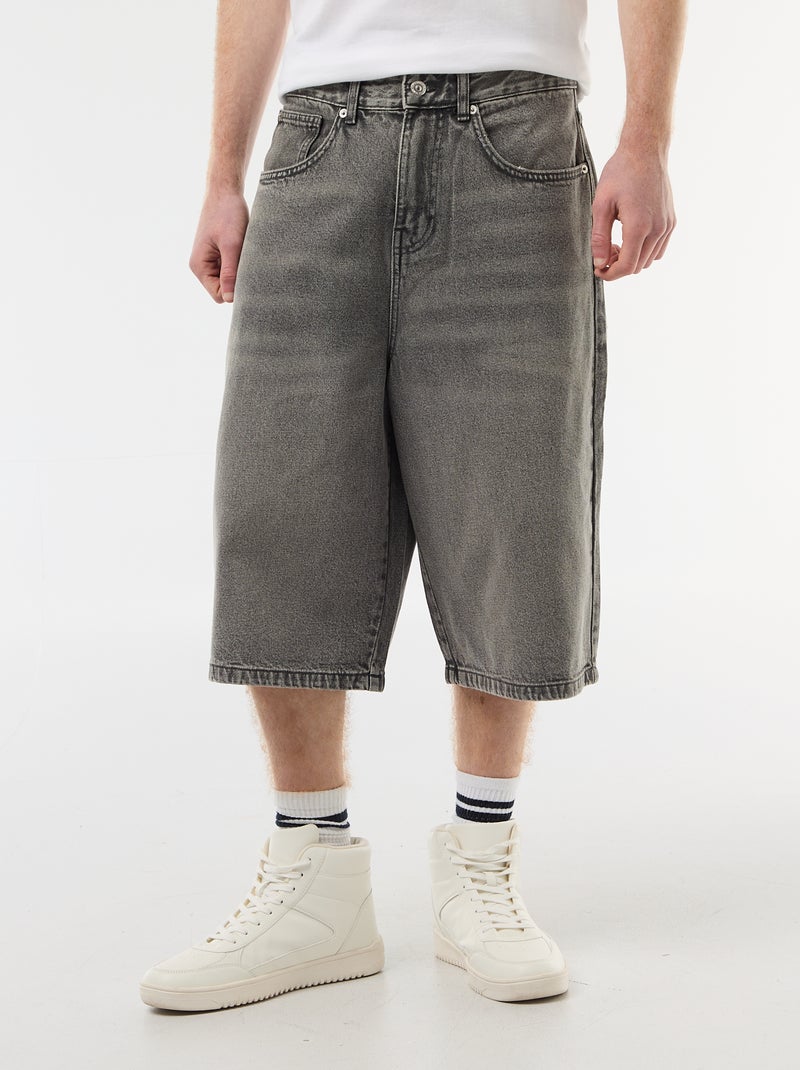 Bermuda largo denim de algodón - Gris