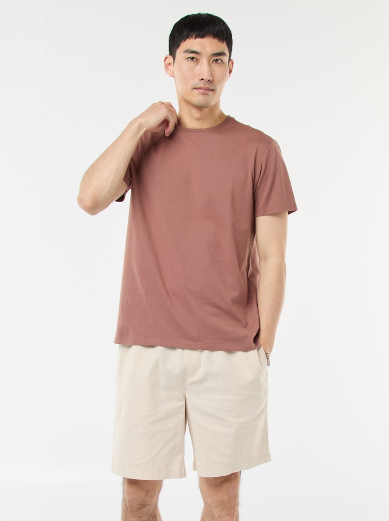 Bermuda liso de algodón y lino - Blanco