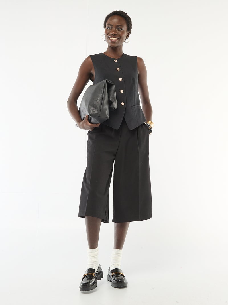 Bermudas con pinzas de tiro alto - Negro