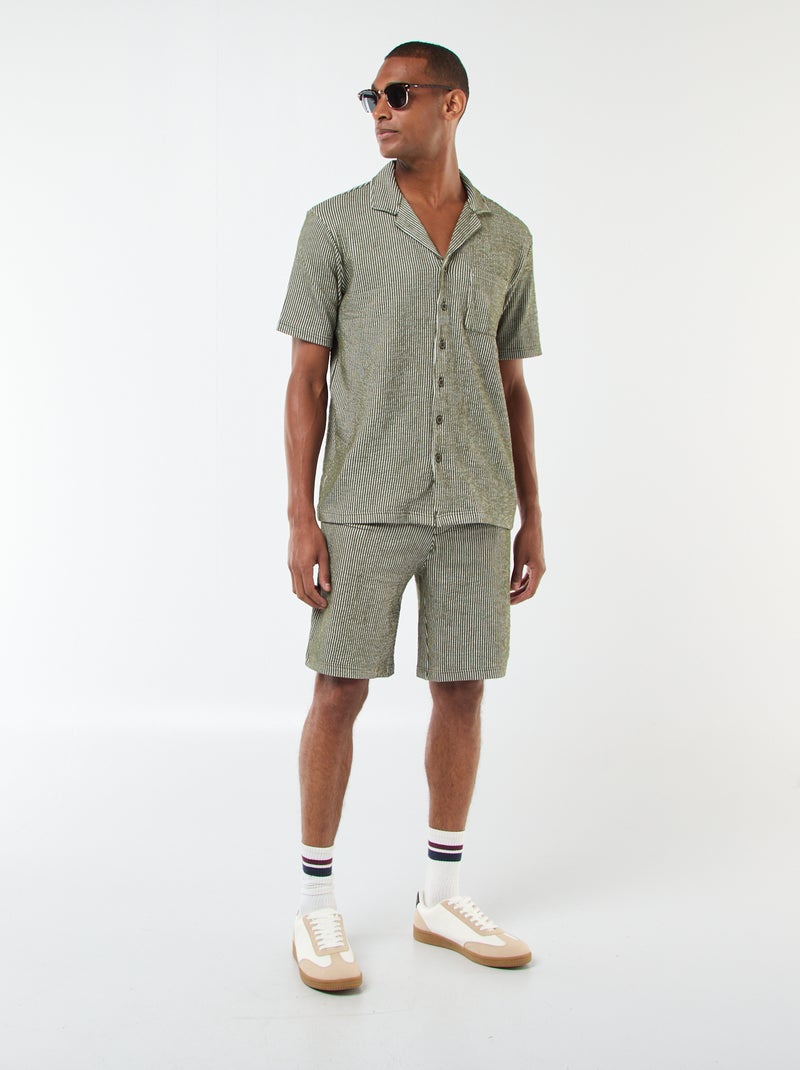 Bermudas de tejido tipo crespón de rayas - Verde