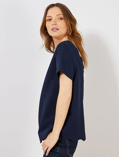 Una blusa básica sencilla por delante y con un escote redondeado por detrás.