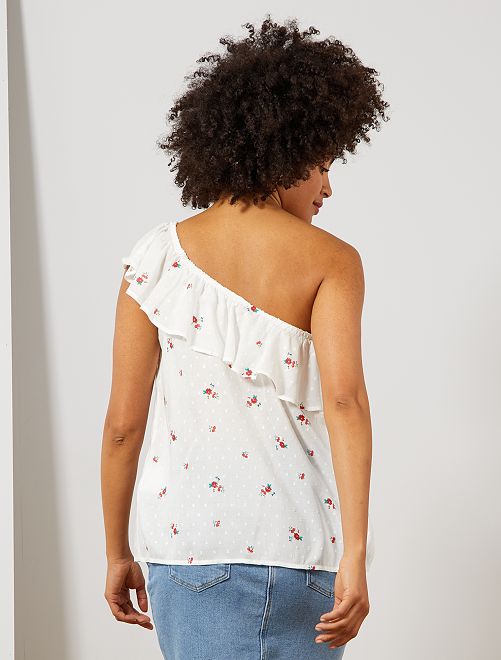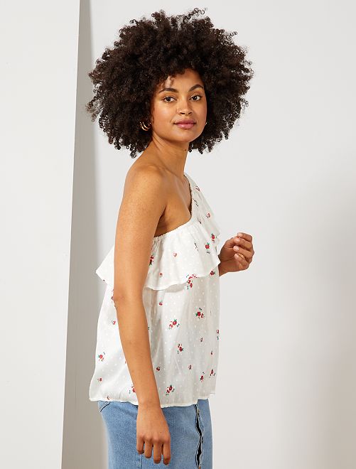Blusa de plumeti con hombro asimétrico - BLANCO