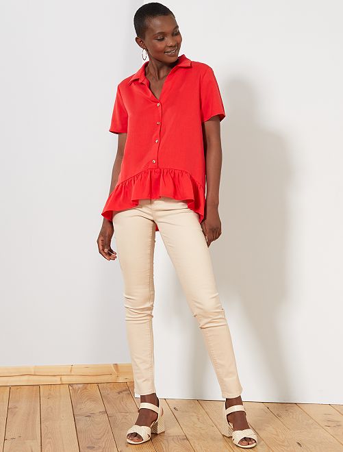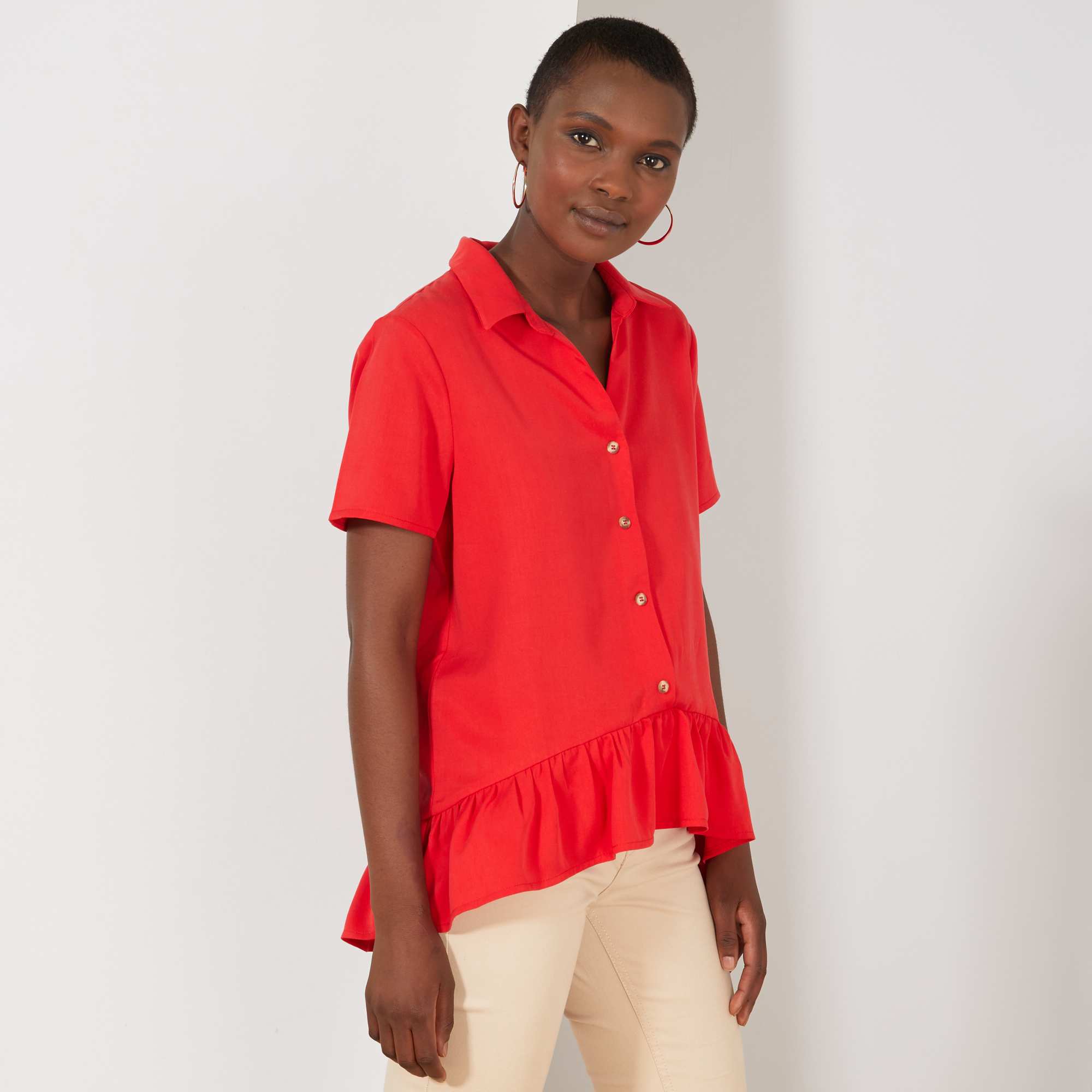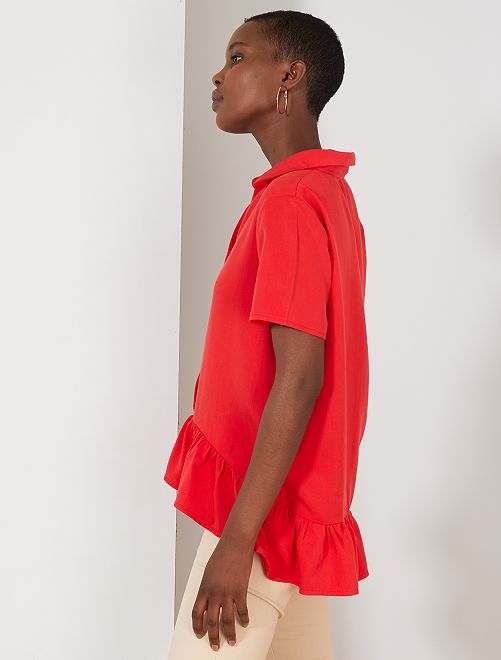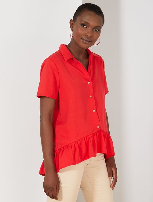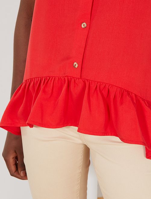 Blusa vaporosa con botones y volantes - ROJO