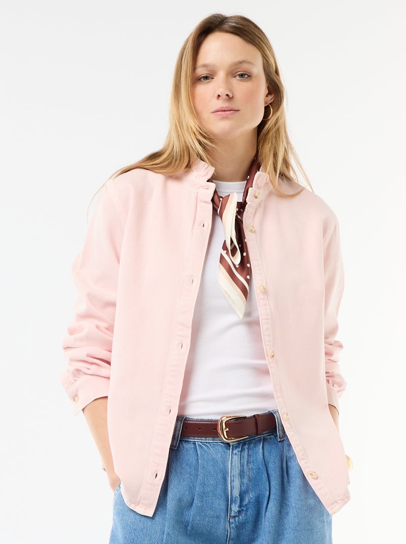 Blusa vaquera con cuello con volantes - Rosa