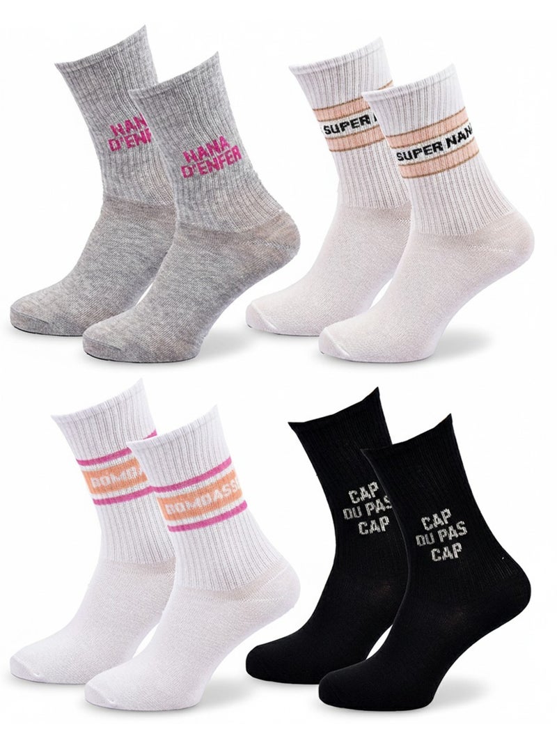 Calcetines con purpurina para mujer con mensaje humorístico. Paquete de 4 pares - Gris blanco negro