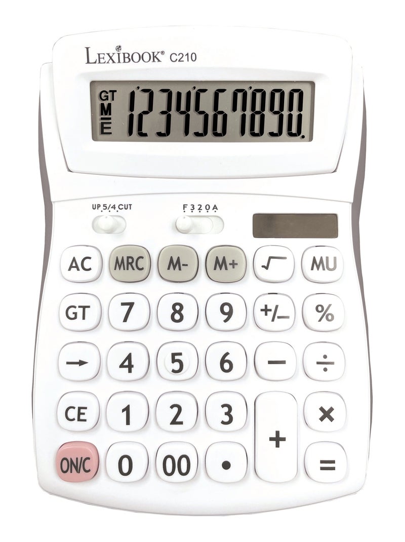 Calculadora de bolsillo de 10 dígitos con ángulo de pantalla ajustable y acabado de goma - Blanco