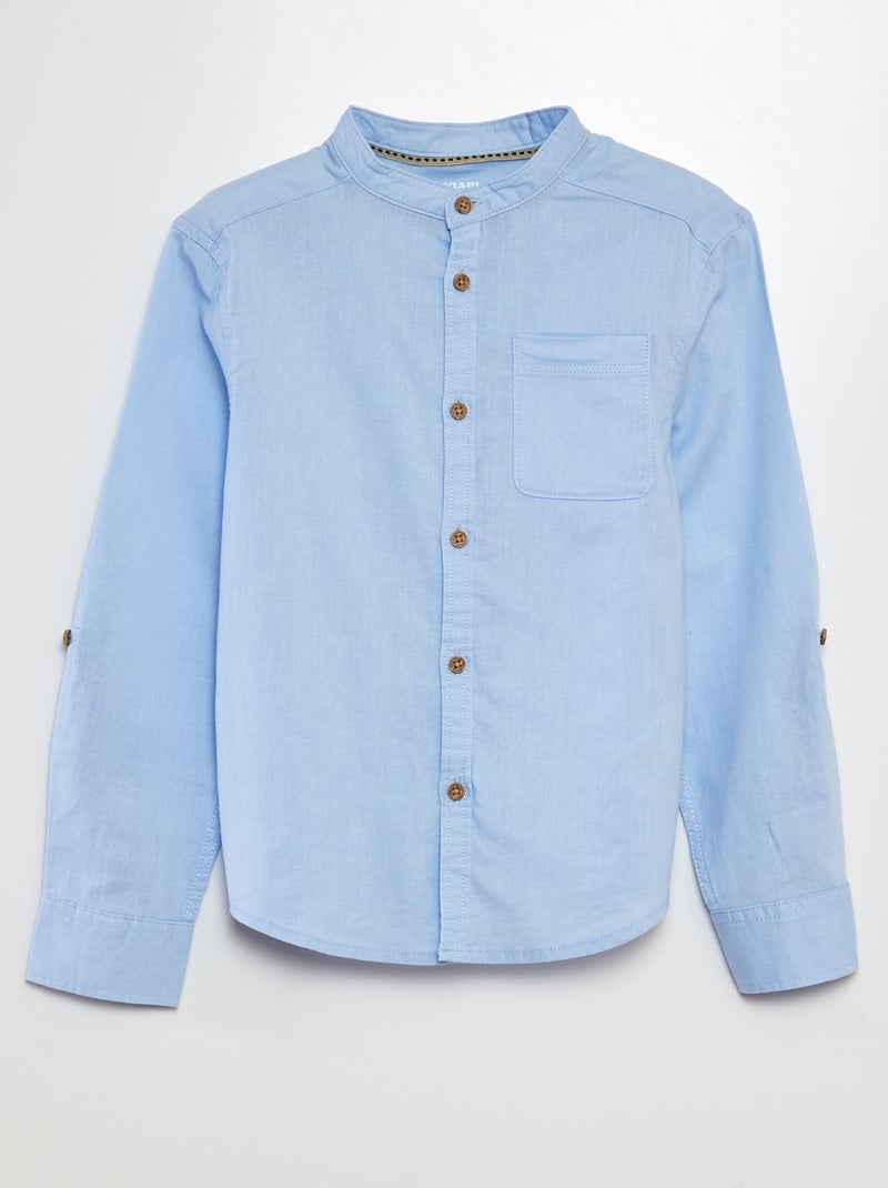 Elegancia y ligereza garantizadas: la camisa de lino mezclado, ideal para los días soleados y los momentos de relax. Cuenta con 45% de fibras de lino, manga larga, cuello mao, abertura abotonada y color liso.