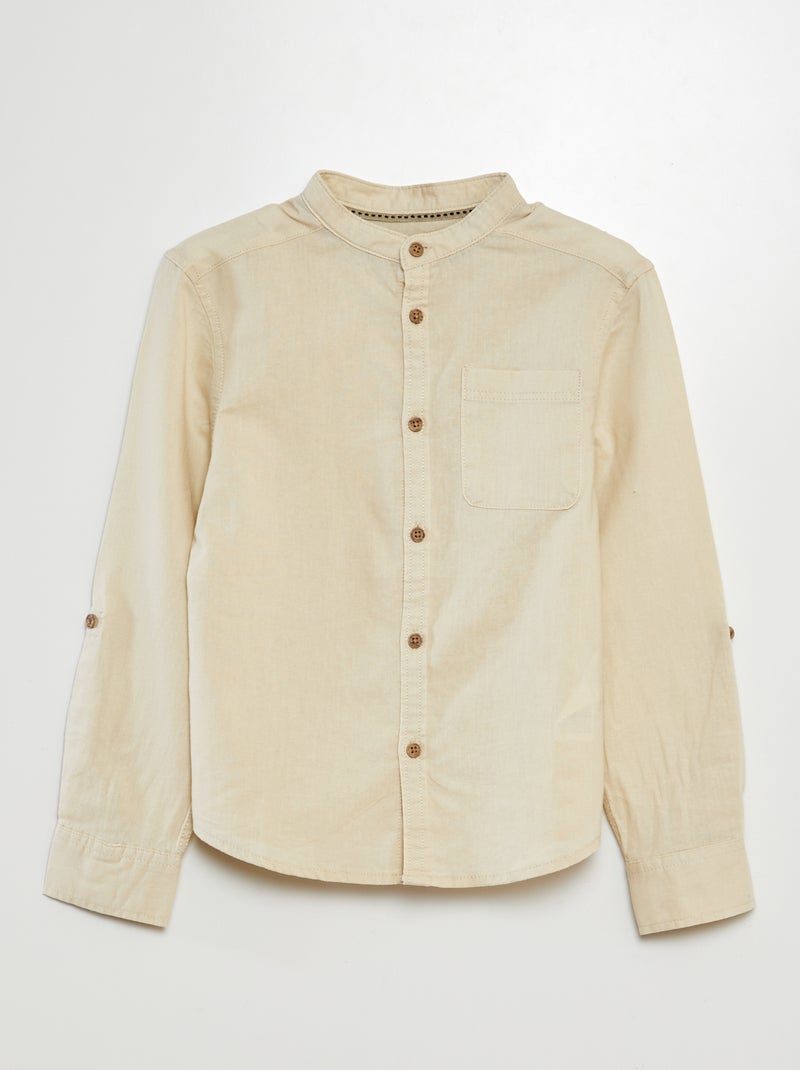 Camisa de lino mezclado - BEIGE