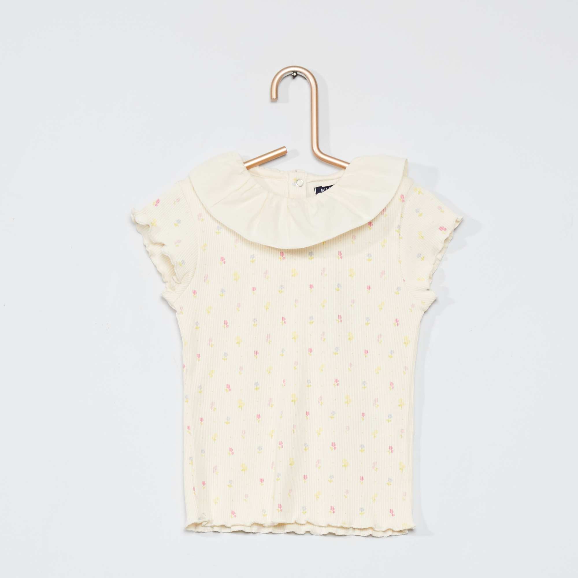 Una bonita camiseta de canalé con un precioso cuello de algodón.