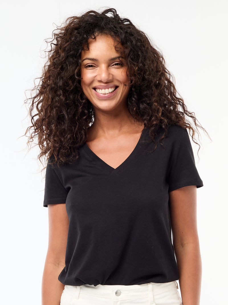 ¡Esta sencilla camiseta combinará con una multitud de looks!