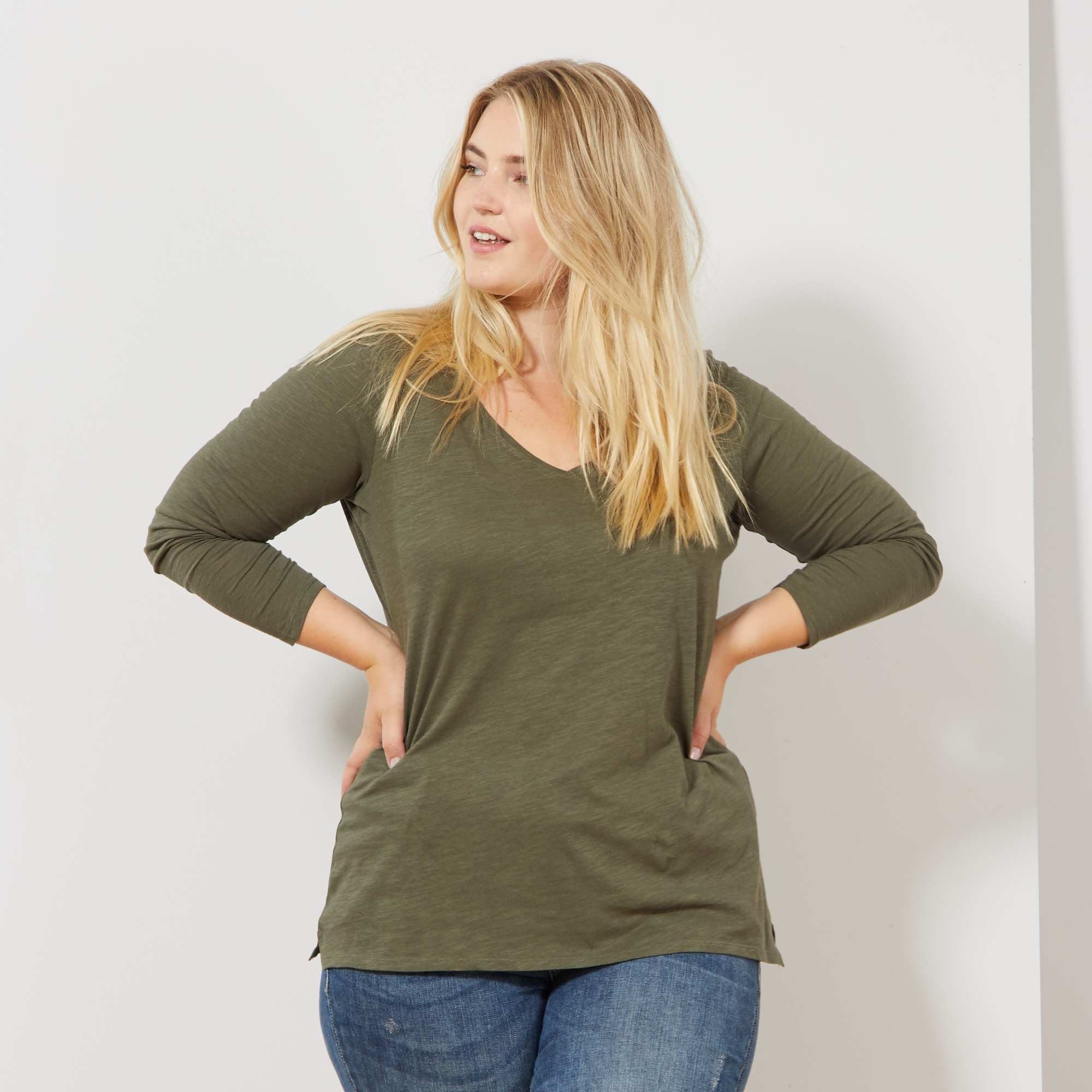 Camiseta de manga larga con cuello de pico: un básico muy favorecedor.