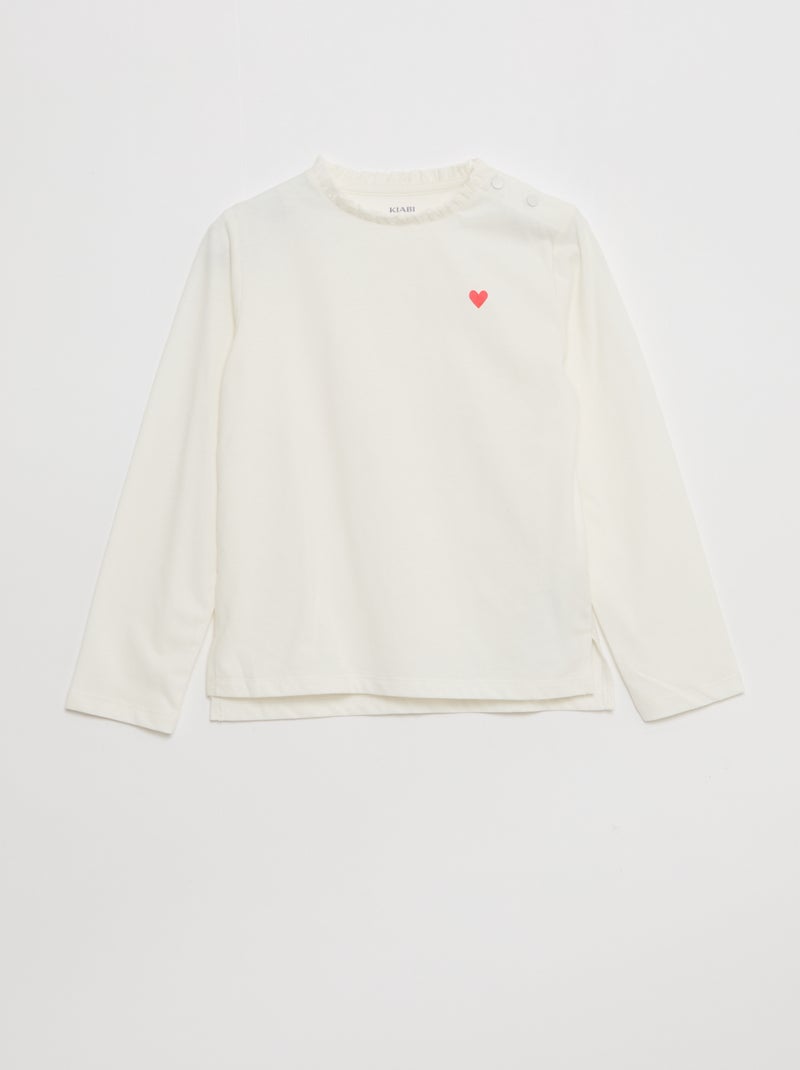 Camiseta de cuello redondo con volantes - colección fácil de poner - Blanco