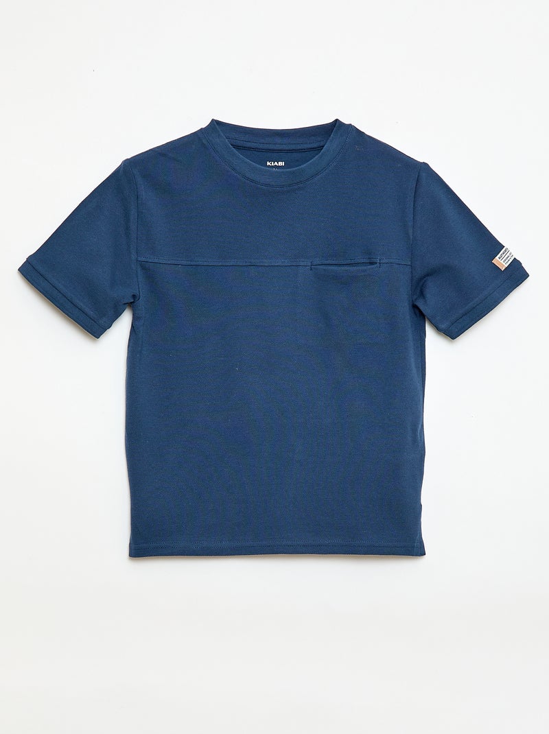 Camiseta de algodón piqué de manga corta - Azul oscuro