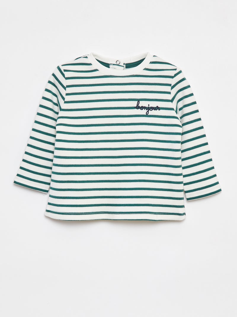 Camiseta de manga larga con 'bonjour' bordado en el pecho - Blanco