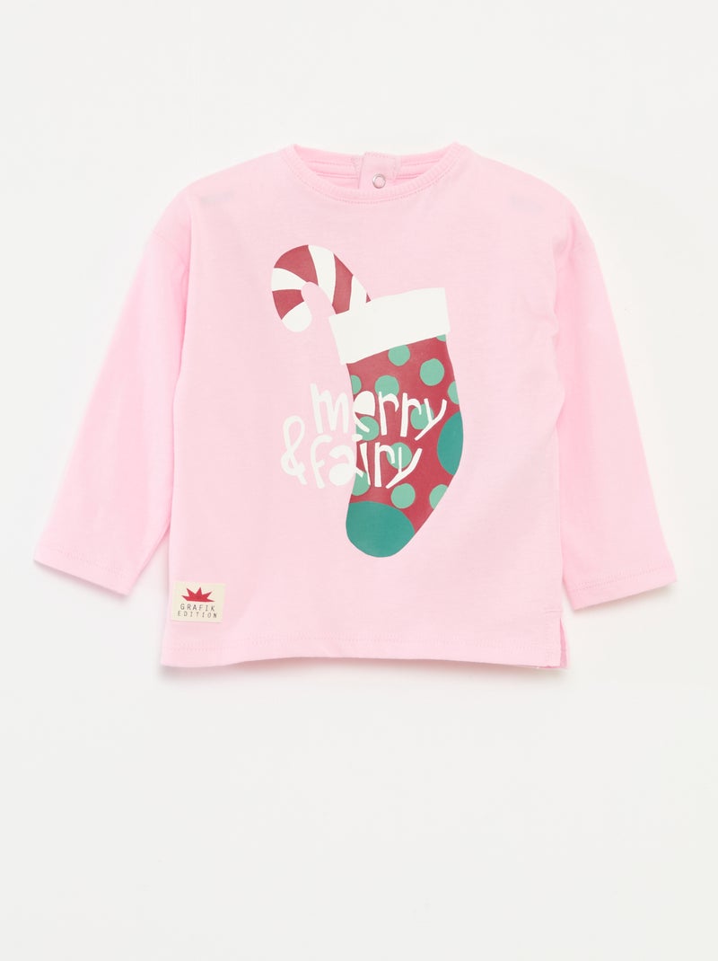 Camiseta de manga larga en punto de algodón - Rosa