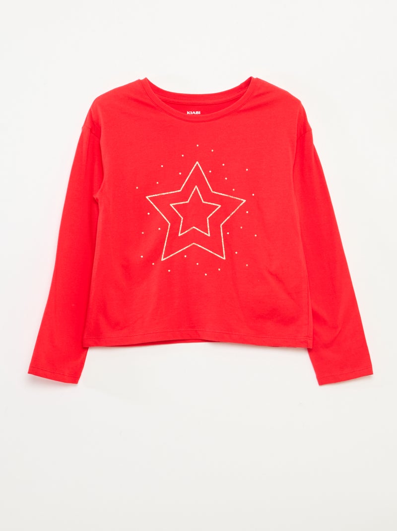 Camiseta estampada de manga larga - Rojo