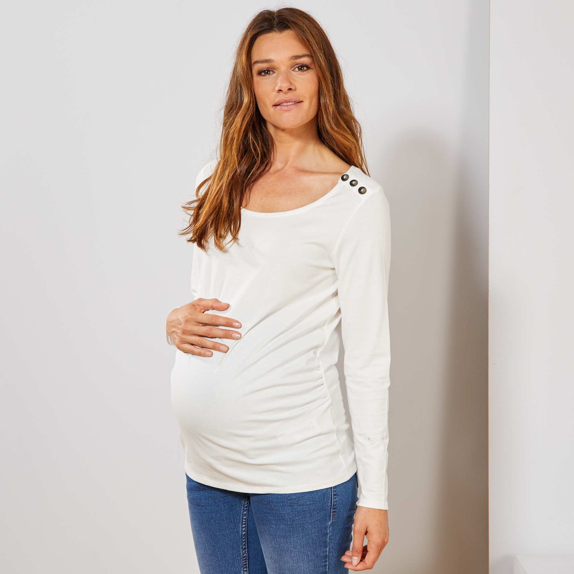 En su versión lisa o a rayas, esta camiseta te acompañará durante todo el embarazo.