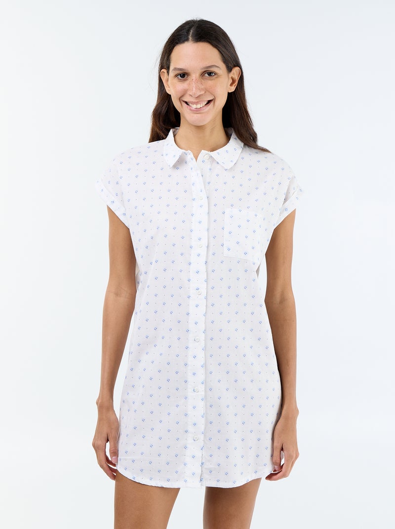 Camisón estampado de velo de algodón - Blanco