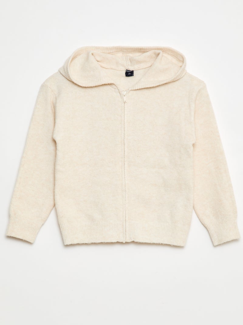 Cárdigan con capucha en punto jaspeado - Beige
