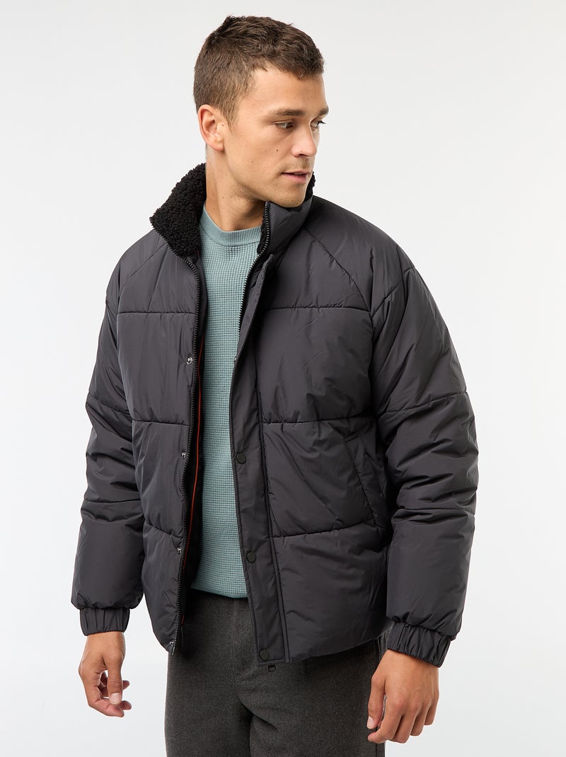 Cazadora acolchada lisa repelente al agua con cordones ajustables en el bajo - Negro