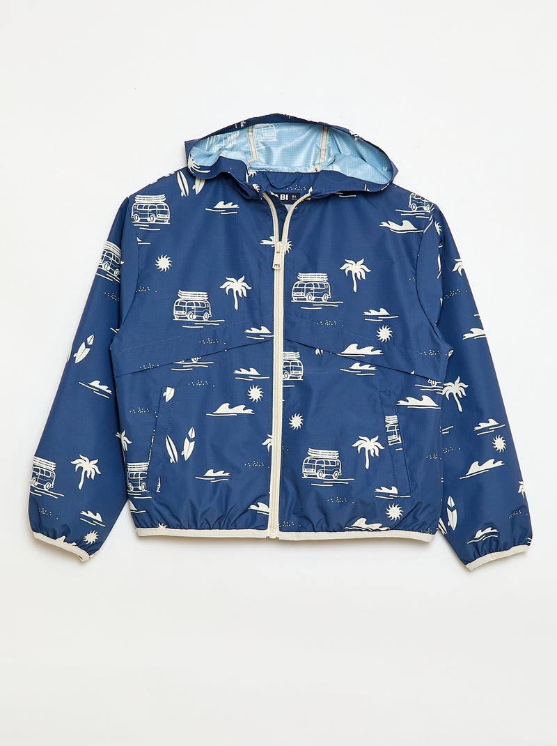 Cazadora cortavientos con capucha - Azul