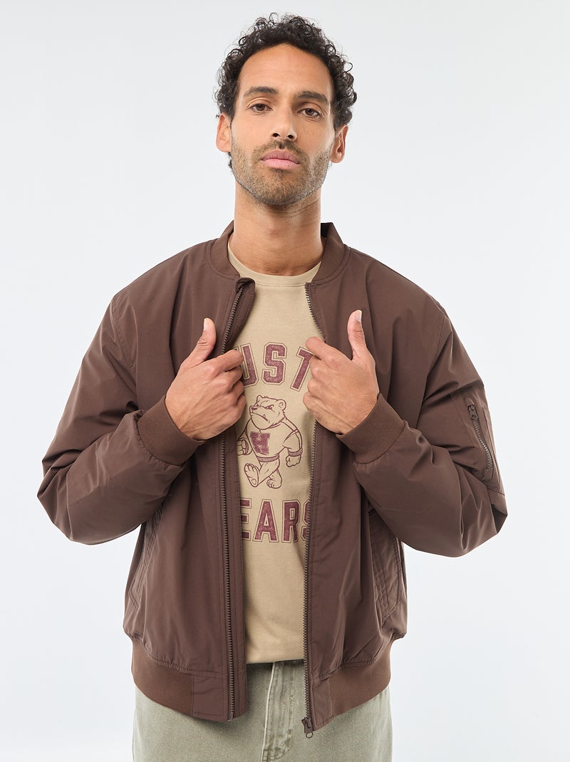 Cazadora estilo aviador con bolsillo con cremallera en la manga - Marron
