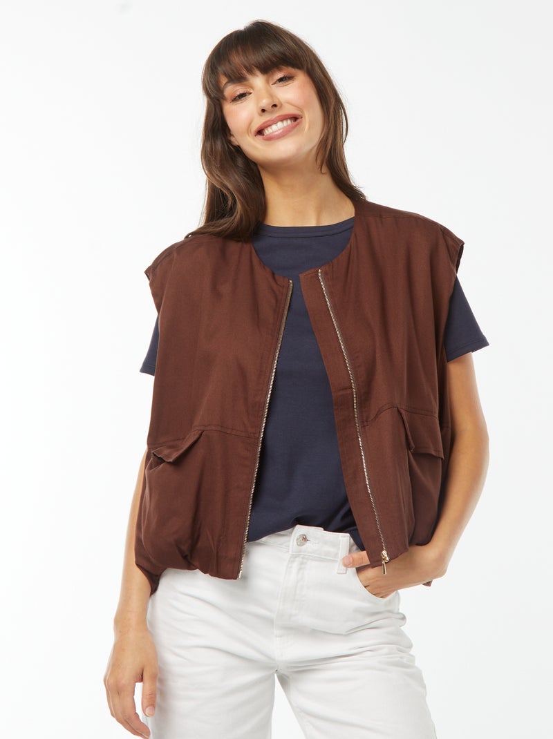 Chaleco satinado con cremallera - Marron