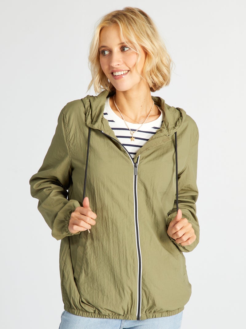 Una cazadora deportiva muy práctica con capucha, cierre fácil y material impermeable. Nos encanta.