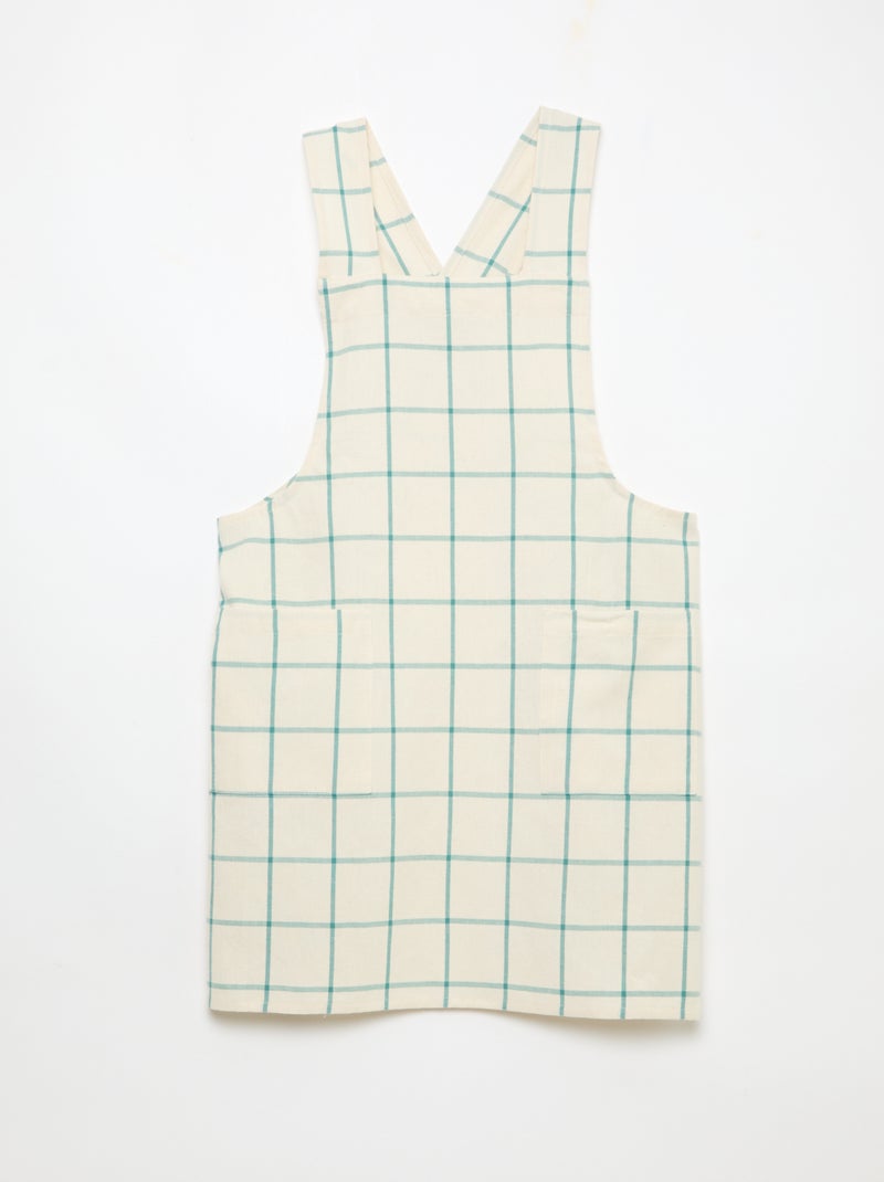 - Tirantes cruzados en la parte trasera para mantener el delantal en su sitio