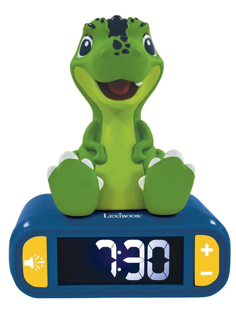 Despertador digital con luz nocturna de dinosaurio en 3D y efectos sonoros - Verde