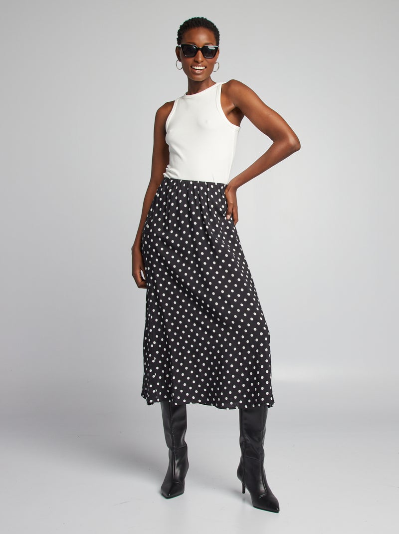 Falda vaporosa con estampado - NEGRO
