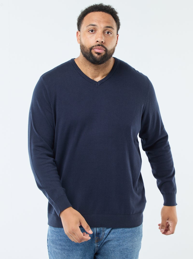 Jersey cuello pico de punto fino - Azul