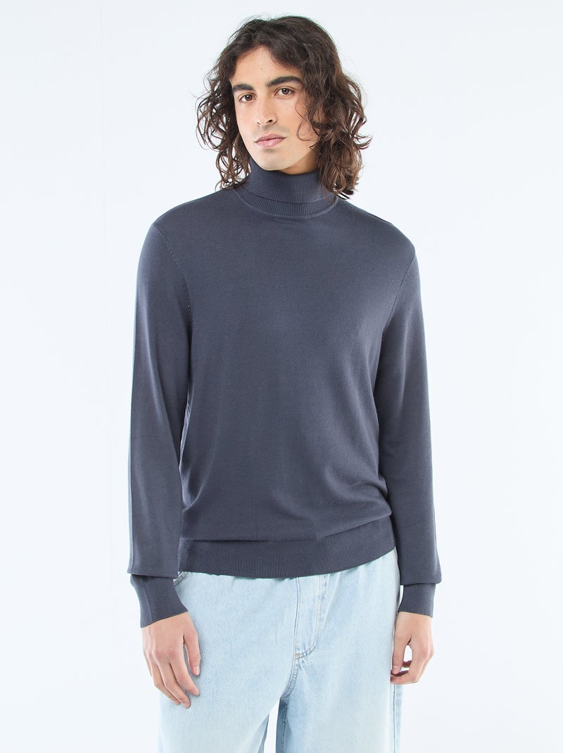 Jersey de cuello alto liso - Azul