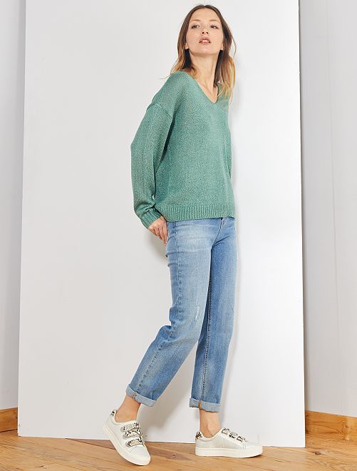 Un jersey básico de punto vaporoso que podrás combinar con un vaquero para lucir un estilo casual.