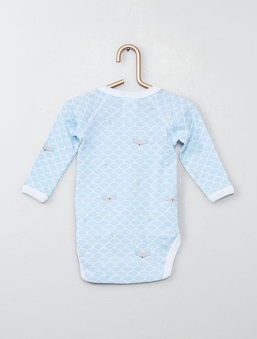 - 1 celeste con estampado de 'escamas' y 'koala' all over