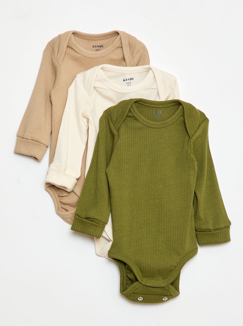 Lote de 3 bodies cuello americano y manga larga - Beige