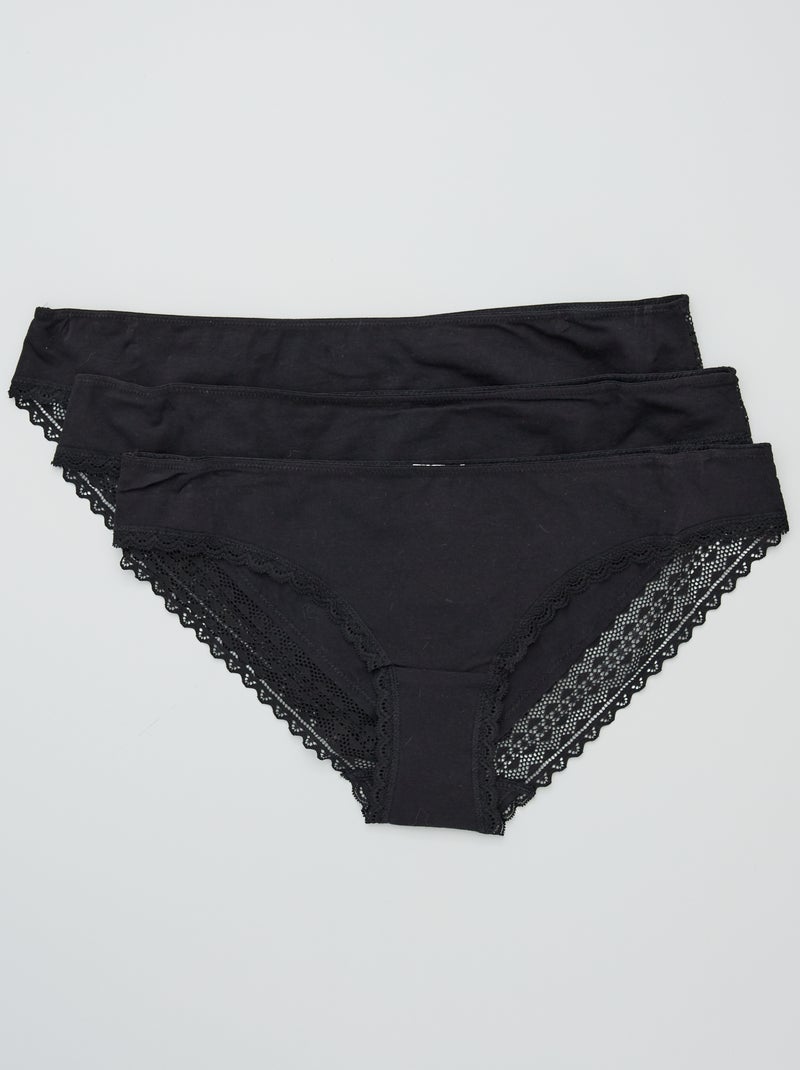 Pack de 3 braguitas algodón encaje - NEGRO