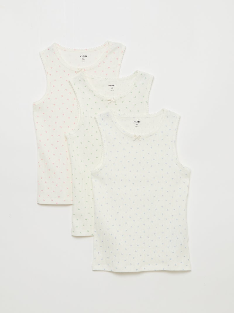 Pack de 3 camisetas de tirantes de punto calado - Blanco