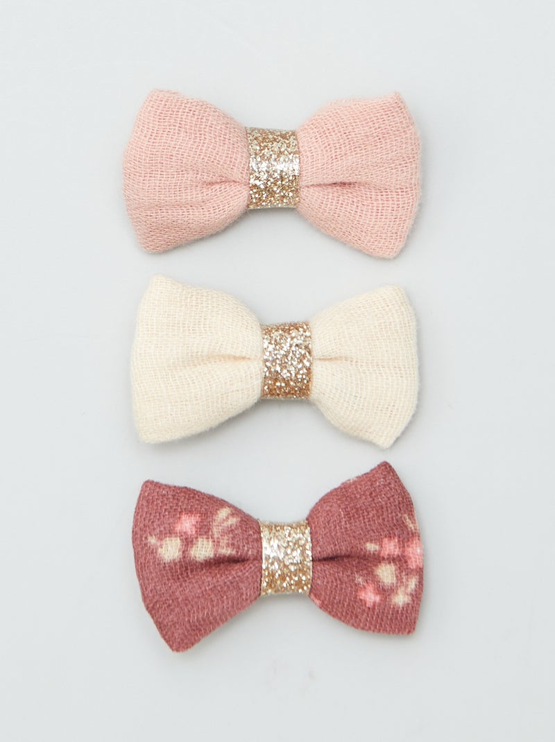 Pack de 3 pinzas de cocodrilo con lazo - ROSA