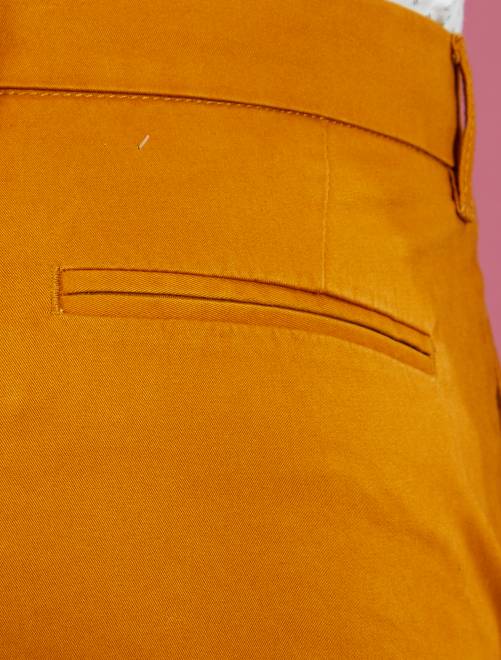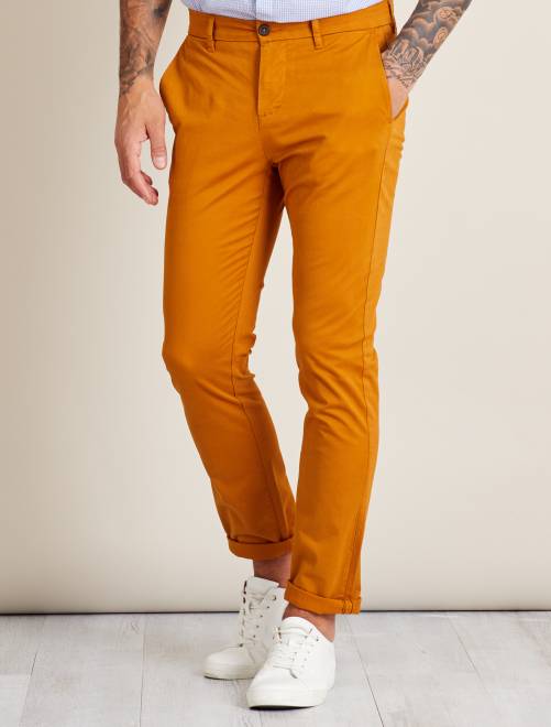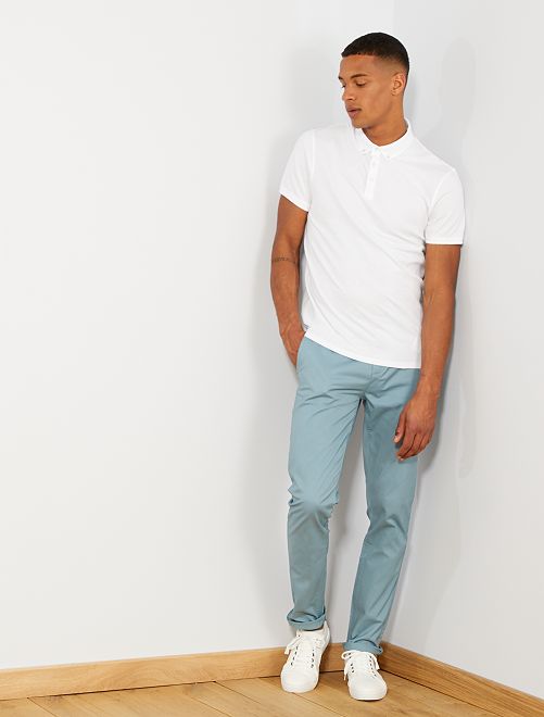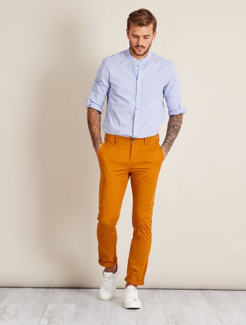 Este básico se reinventa con un corte slim y un precioso tejido de sarga elástico. Llévalo con vueltas en los bajos para un look casual chic a la última.