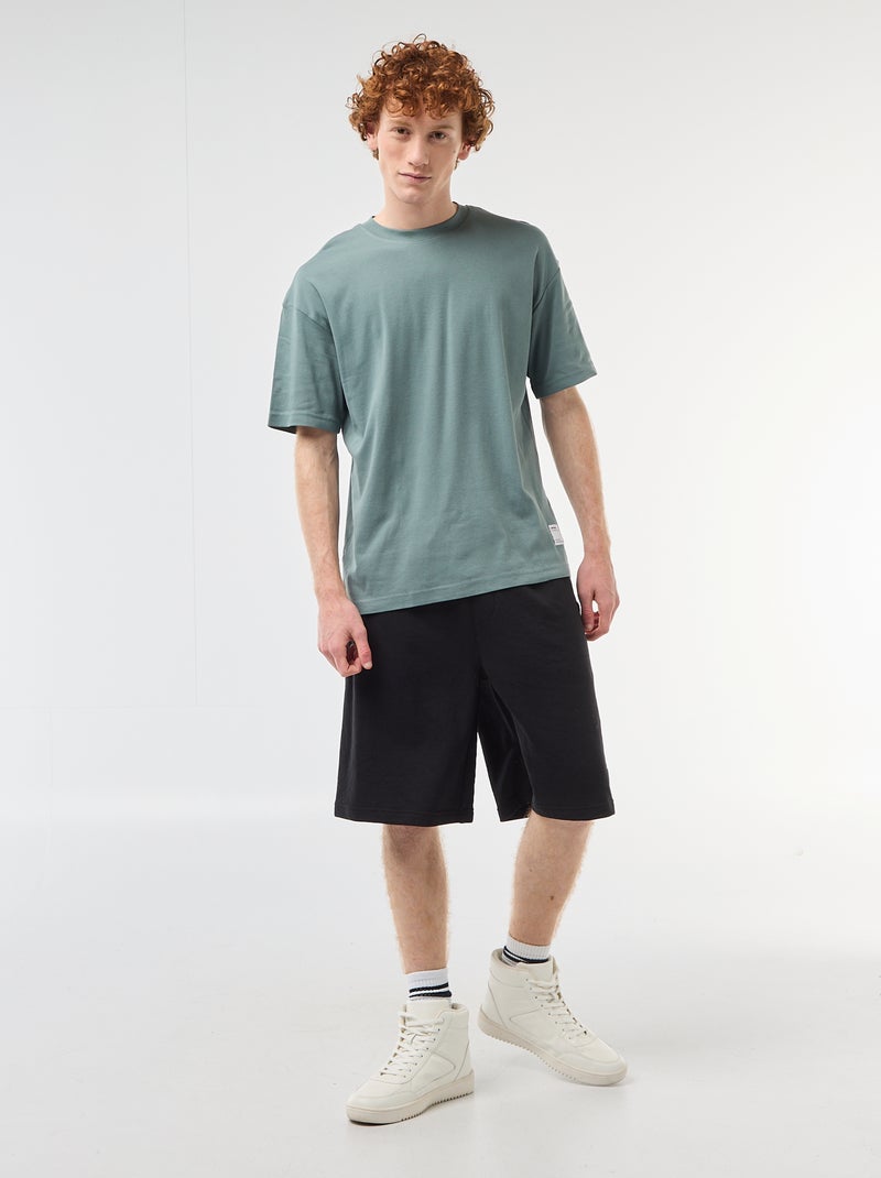 Pantalón corto con parche en algodón liso - Negro