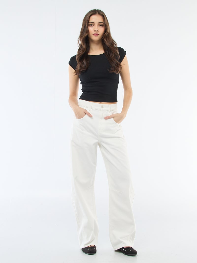 Pantalón denim corte globo - Beige