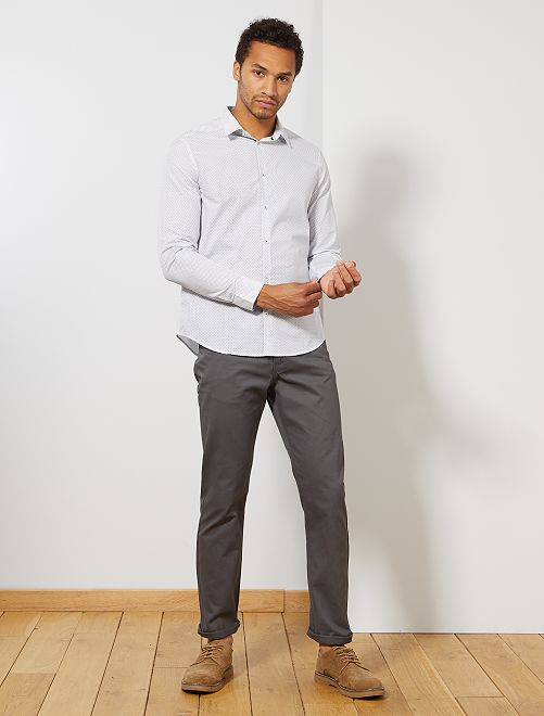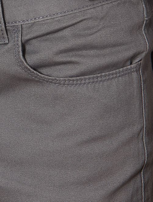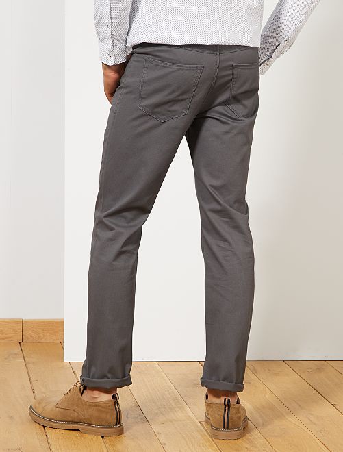 Pantalón con 5 bolsillos y corte recto, clásico pero esencial en cualquier guardarropa masculino que se precie. De gabardina suave y confortable, con trabillas en la cintura, cierre con botón y cremallera, 1 bolsillo monedero y 2 bolsillos superpuestos delante, 2 bolsillos detrás y remaches de metal.
