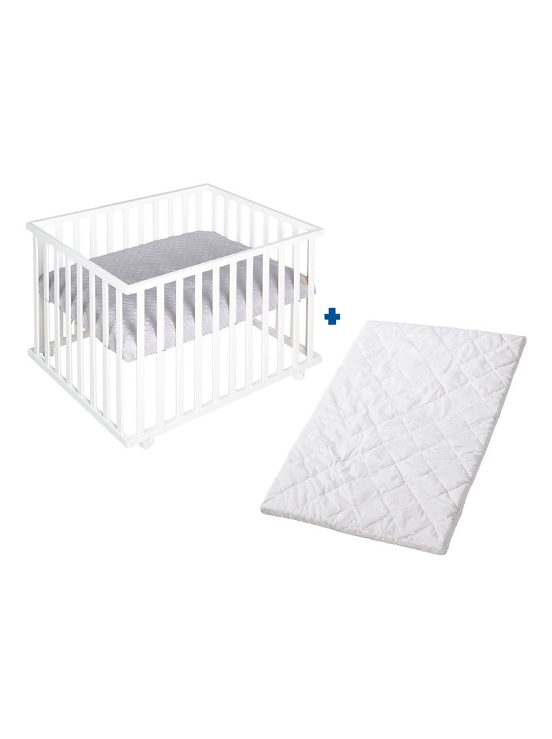 Parque infantil móvil de madera con alfombra repelente y colchón desenfundable 'Roba roba Style' - Blanco Gris