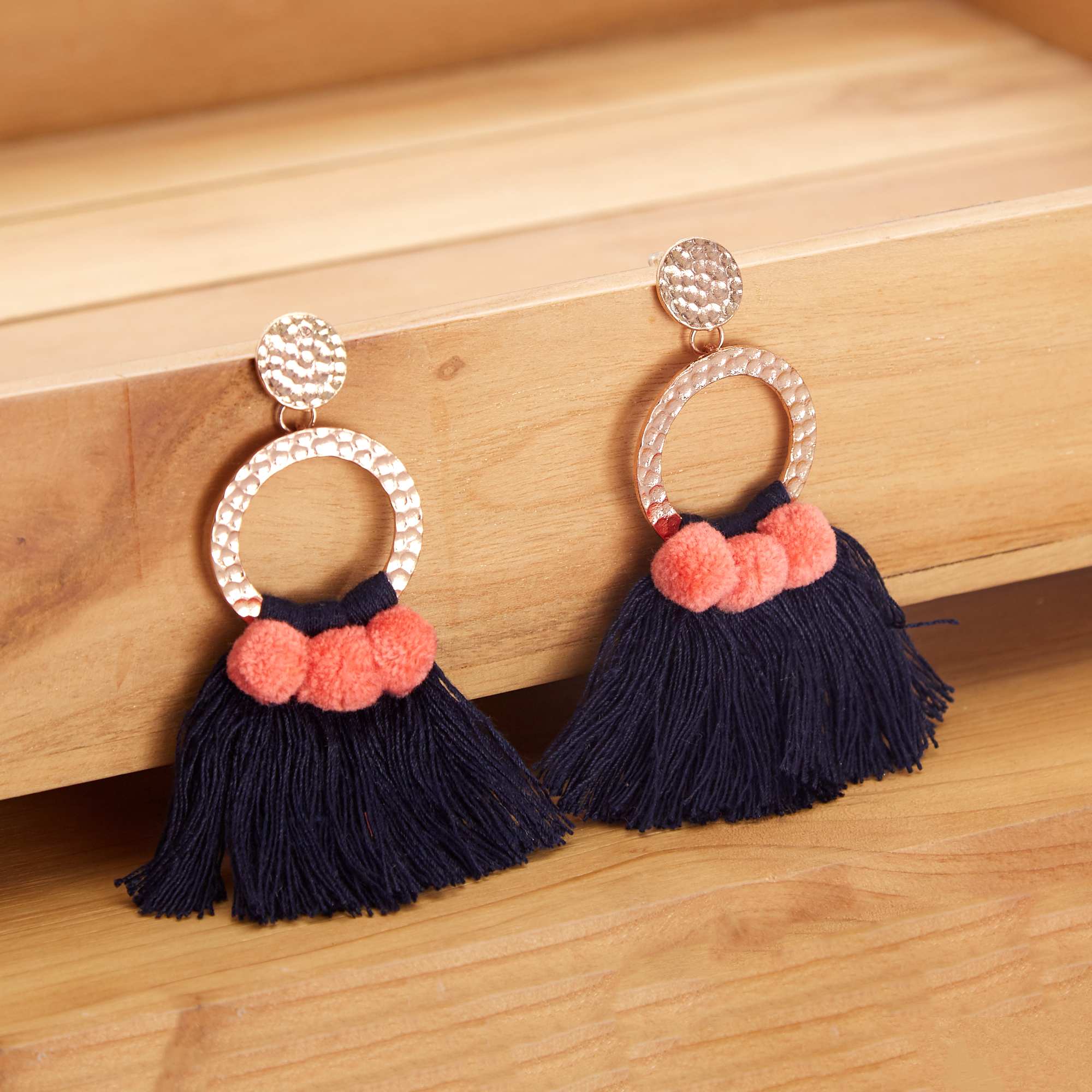 Pendientes con flecos - azul navy