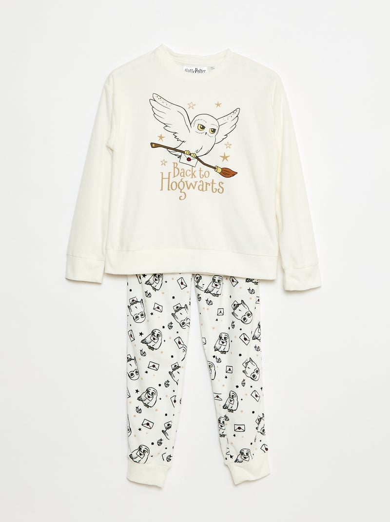 Pijama largo polar 'Harry Potter' - 2 piezas - Blanco