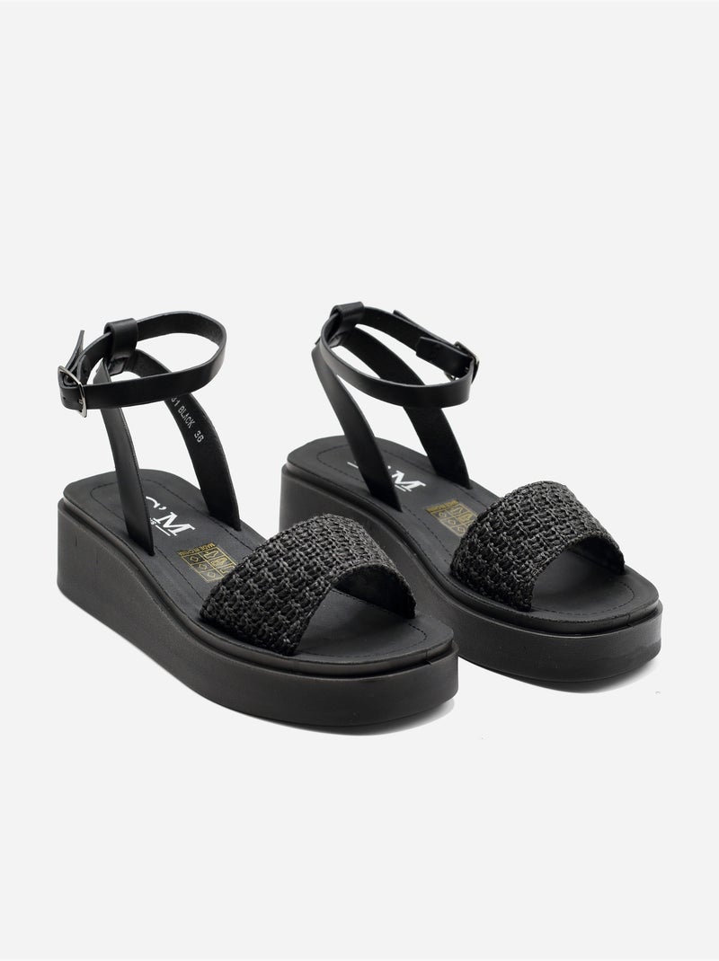 Sandalia de cuña para ponerse - C M - Negro