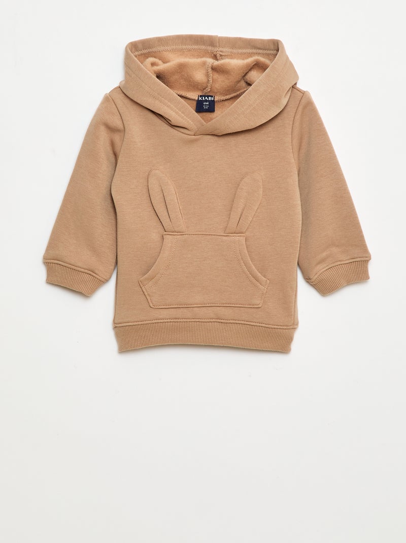 Sudadera con capucha de felpa con diseño de conejito - Marron