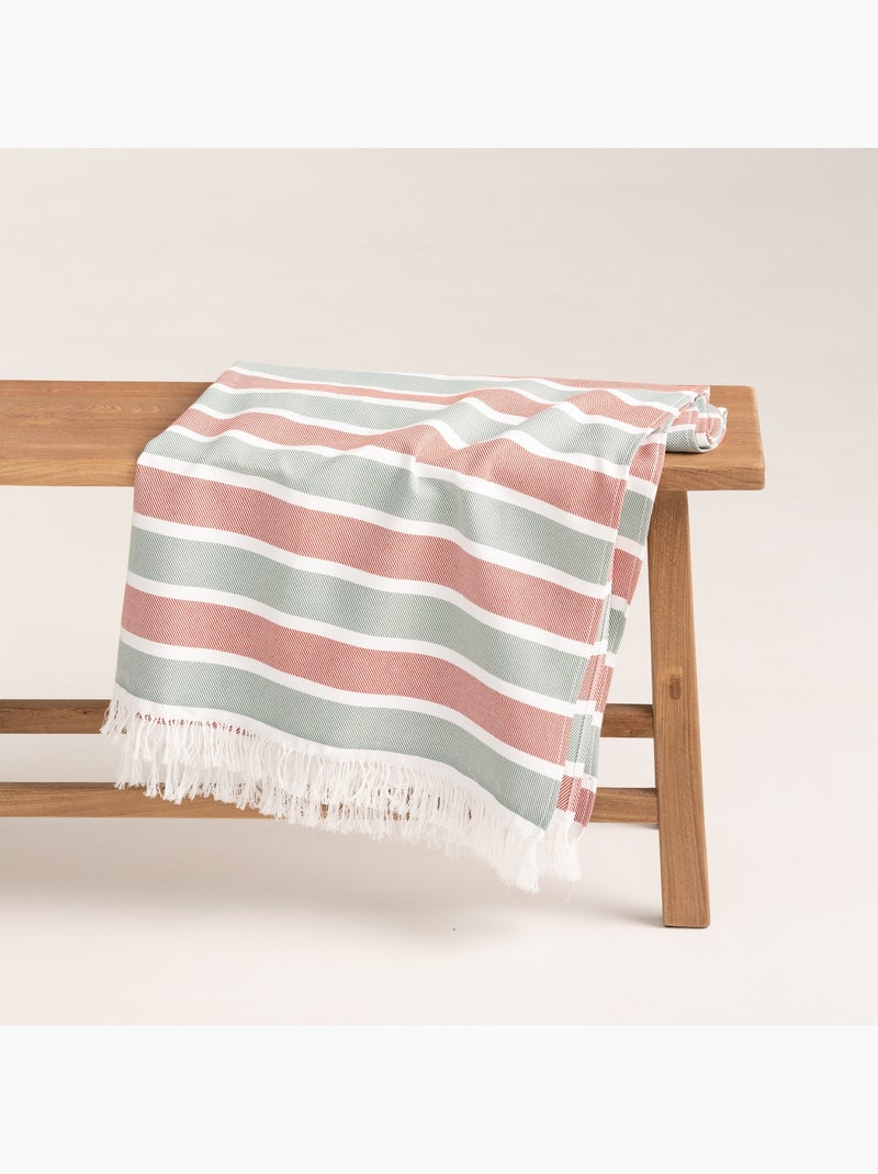 Toalla pareo de playa, tejido en relieve, Fouta - Gamusi. - Blanco Rojo