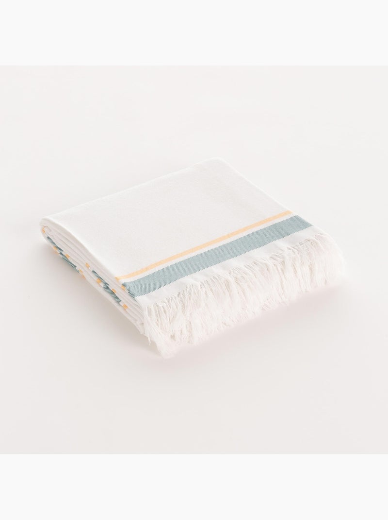 Toalla pareo de playa, tejido en relieve, Fouta - Gamusi. - Blanco Verde